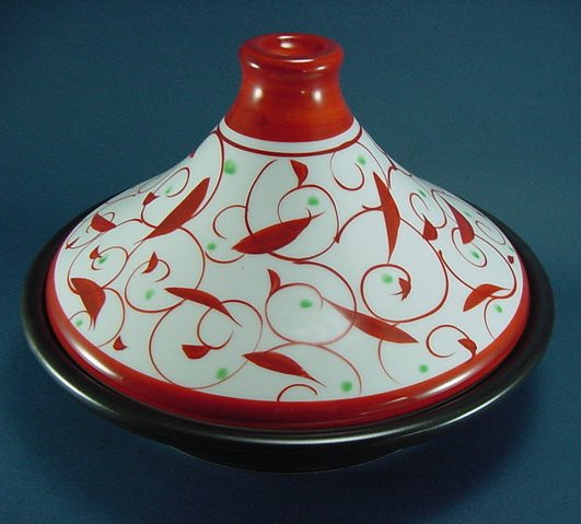 アフリカモロッコの伝統的な鍋で水や油を使わず、素材から出る水分を鍋の中で循環させ、蒸し焼き等の調理ができます。